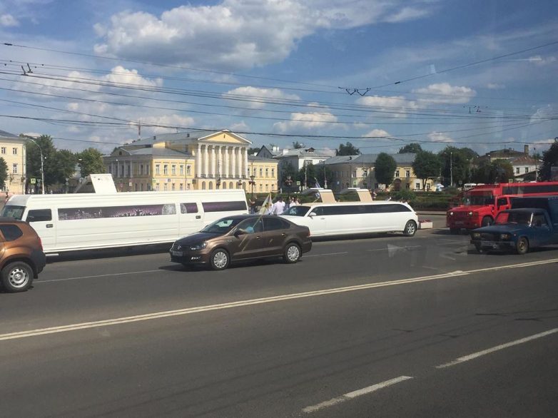 Сотрудниками ГИБДД проведена проверка по факту нарушений правил перевозки людей допущенных водителями задействованными на торжественных мероприятиях посвященных выпуску курсантов академии химической защиты. На данный момент к административной ответственности согласно ч.2 ст.12.23 КОАП РФ привлечены 4-ро водителей лимузинов и элитных иномарок, — сообщил представитель пресс-службы УМВД по Костромской области Роман Варенцов.Понесут ли какую-либо ответственность сами новоиспечённые офицеры, пока неизвестно.