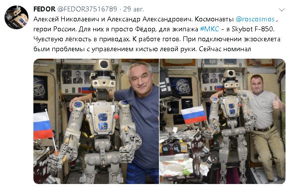Позднее ироничный комментарий по поводу сложностей с включением появился в микроблоге самого Федора. Также робот сообщил о начале тренировок.