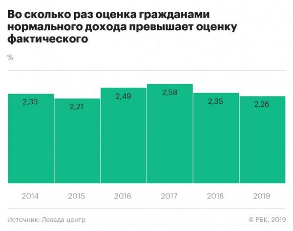 Представления о нормальном доходе отражают субъективное восприятие благосостояния, отмечают Гончаров и Караева. «Эта категория имеет для респондентов установочный, а не реальный характер», — утверждают эксперты. Снижение границы «нормального» уровня жизни в 2018 году могло стать следствием общего спада потребительских настроений во второй половине прошлого года, а рост в 2019 году — частичной компенсацией прошлогоднего падения.С 2017 года разрыв между оценкой нормального дохода и фактическим среднедушевым доходом постепенно снижается. При отсутствии роста реальных располагаемых доходов это может свидетельствовать о снижении потребления и материальных притязаний, полагают социологи.