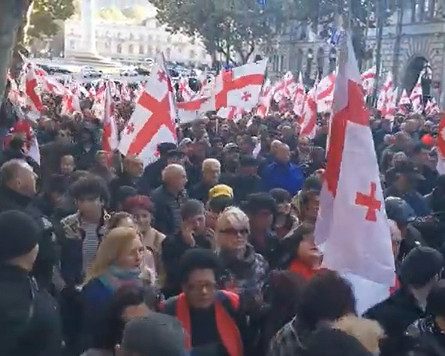 Десятки оппозиционных политических партий в воскресенье приняли участие в многотысячном митинге в Тбилиси на проспекте Руставели у здания парламента за внеочередные пропорциональные выборы. т