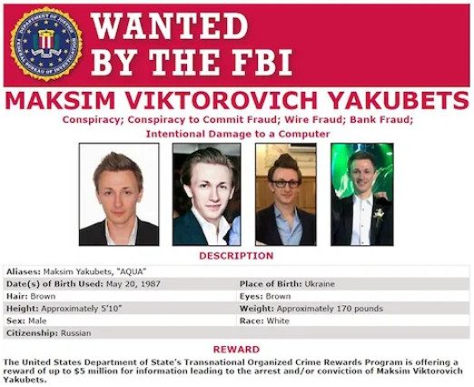 Лидером Evil Corp Минфин называет Максима Якубца (известен в интернете под именем Aqua). За информацию о его местонахождении объявлена награда $5 млн. Министерство юстиции США открыло против него уголовное дело.
