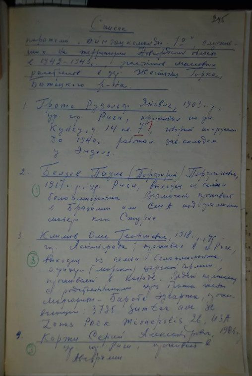 Список имен латвийских карателей, обнародованный УФСБ© Фото предоставлено УФСБ РФ по Новгородской области
