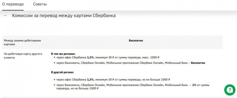 А вот информация о комиссии за перевод между картами самого Сбербанка.