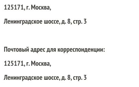 В качестве юридического и почтового адреса регионального отделения указан адрес: Москва, Ленинградское шоссе, д. 8 стр. 3. Там вместо офиса расположена низкая кирпичная постройка с глухими металлическими дверями. Из стен к соседним домам протянуты высоковольтные провода.