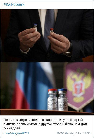 Михаил Мурашко заявил, что испытания вакцины показали высокую эффективность и безопасность препарата. «У всех добровольцев выработались высокие титры антител к COVID-19. При этом ни у кого из них не отмечено серьезных осложнений иммунизации», — сказал министр, которого цитирует «Интерфакс». Вакцина будет производиться Центром имени Гамалеи и компанией «Биннофарм», а также на площадках «ряда отечественных производителей». По словам министра, интерес к вакцине уже проявили ряд стран, и Российский фонд прямых инвестиций (РФПИ) инвестирует в производство и продвижение вакцины за рубежом. Какие именно страны заинтересовались вакциной, не сообщается.