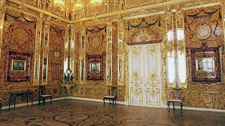 Янтарную комнату (панели, украшения и панно) создали немецкие мастера в XVIII веке преимущественно из янтаря для прусского короля Фридриха I. Позднее ее подарили Петру I, комната стала главной жемчужиной резиденции российских императоров в Царском селе. Во время Второй мировой войны в 1941 году немцы вывезли комнату в Королевский замок Кенигсберга (ныне — Калининград). Незадолго до штурма города-крепости Кенигсберг весной 1945 года комната бесследно исчезла. В 1967 году создали государственную комиссию по розыску шедевра, которую упразднили в 1984 году из-за отсутствия результатов.