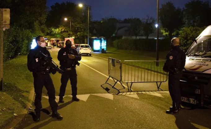 Неизвестный мужчина был застрелен полицией в городе после того, как отрубил голову школьному учителю истории.