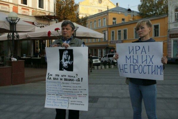Дочь погибшей журналистки Ирины Славиной вышла на пикет в центре Нижнего Новгорода