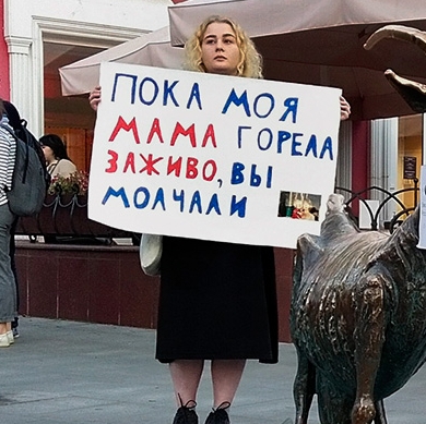 3 октября в городах России прошли одиночные пикеты из-за самосожжения журналистки KozaPress Ирины Славиной. Она подожгла себя днём ранее у здания МВД в Нижнем Новгороде: после этого там собралась стихийная акция, а на следующий день люди стали приходить с плакатами.