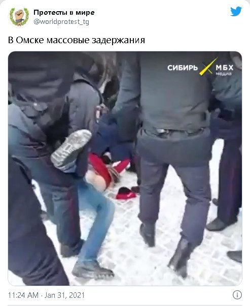 31 января, в воскресенье, в городах России с утра начались повторные массовые протестные акции, вызванные, в том числе, арестом оппозиционного политика Алексея Навального. Волна протестов в России началась 23 января.