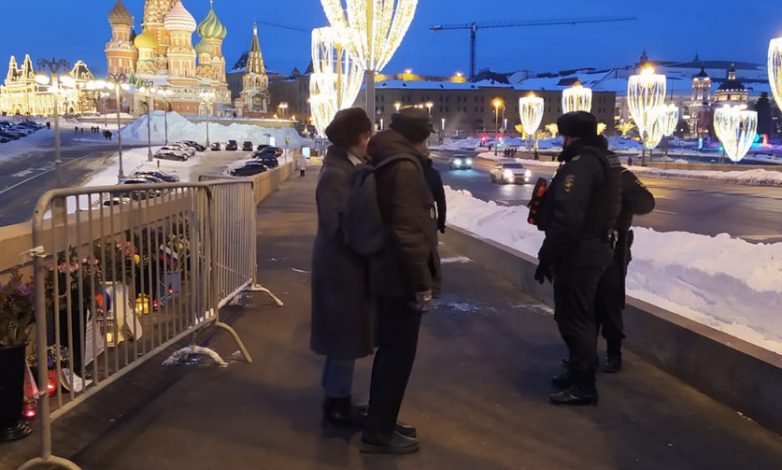 В Москве вечером в пятницу, 19 февраля, сотрудники полиции задержали несколько волонтеров — «смотрителей», которые охраняют мемориал на месте убийства политика Бориса Немцова.