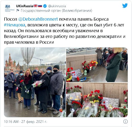 Впервые за шесть лет со дня его убийства в столице не было марша: мэрия города отказалась его согласовать, сославшись на ограничение массовых мероприятий из-за коронавируса. В ответ на это организаторы попросили не мешать хотя бы возложению цветов на мосту, где Немцов был убит.По данным ТАСС к 13.00 мск, на акцию в Москве собрались около сотни человек, включая волонтеров и журналистов. Среди собравшихся были и послы США, Великобритании, Германии, Чехии и Латвии.
