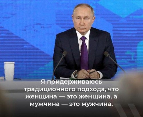 Не прошел президент и мимо темы новой этики и гендерной проблематики на Западе. «Если кто-то считает, что женщина и мужчина — это одно и то же, ради бога, но существует же какой-то здравый смысл… Мужчины-спортсмены объявляют себя женщинами и выступают в тяжелой атлетике и в каком-то другом виде спорта. Женский спорт перестанет существовать совсем», — заметил Путин. Он добавил, что в этом вопросе придерживается традиционного подхода: женщина останется женщиной, а мужчина — мужчиной. «Мама — это мама! Отец — это отец! Надеюсь, что у нашего общества есть внутренняя моральная защита, продиктованная традиционными конфессиями России».