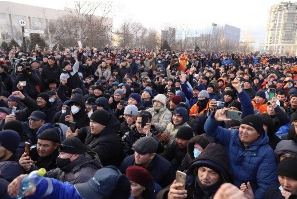 • 4 января, несмотря на обещание властей снизить цены на газ в Мангистауской области, протесты охватили весь Казахстан — акции прошли в столице Нур-Султане, крупнейшем городе страны Алма-Ате и в других городах — Караганде, Уральске, Талдыкоргане, Кызылорде, Шымкенте. Требования митингующих из социально-экономических стали политическими: отставка правительства. В некоторых городах толпы скандировали «Шал, кет» («Дед, уходи»), имея в виду бывшего президента Казахстана Нурсултана Назарбаева. У протестов при этом нет выраженного лидера.• Президент Казахстана Касым-Жомарт Токаев обратился к народу с просьбой не следовать призывам «деструктивных лиц, заинтересованных в подрыве единства общества». «Вновь обращаюсь к вам [с просьбой] проявить благоразумие и не поддаваться на провокации изнутри и извне. <...> Власть не падет, но нам нужен не конфликт, а взаимное доверие и диалог», — заявил он.