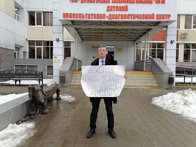Александр Курмышкин на пикете после решения консилиума по Марку