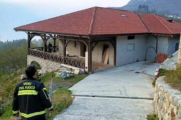 Итальянские пожарные на вилле Владимира Соловьева после поступившего сообщения о поджоге, апрель 2022 г.
