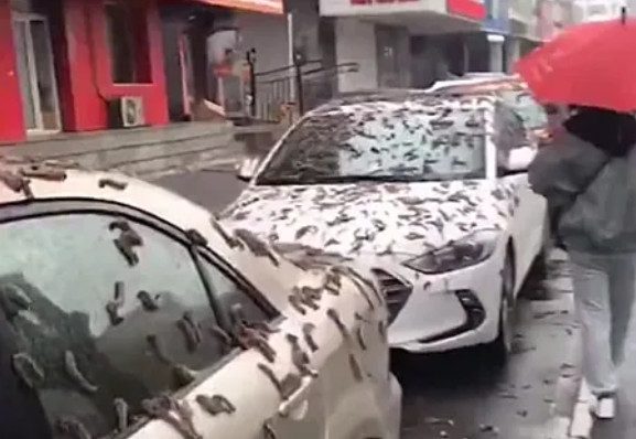 В соцсетях опубликовано видео, показывающее припаркованные автомобили, покрытые червями. Эти кадры вызвали огромный переполох в сети.