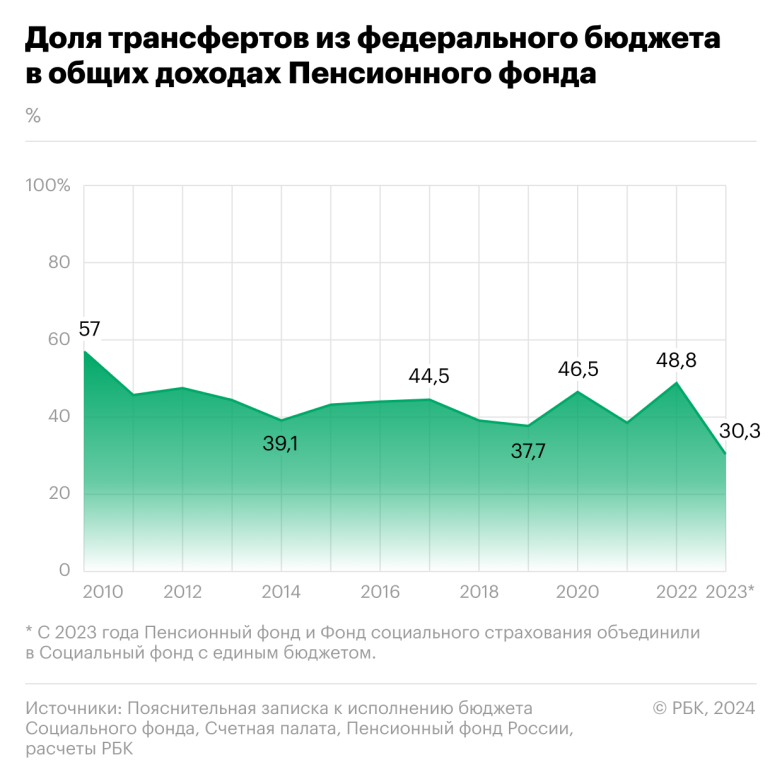 «Трансферт из федерального бюджета на расходы 2023 года был перечислен в полном плановом объеме. Но часть этого трансферта была перечислена раньше — в конце 2022 года», — подтвердили РБК в Минтруде. Благодаря этому досрочному перечислению трансферта на 2023 год 2022 год для бюджета фонда был профицитным, но совокупный объем средств, поступивших в 2023 году, оказался «несколько ниже фактически понесенных фондом расходов».