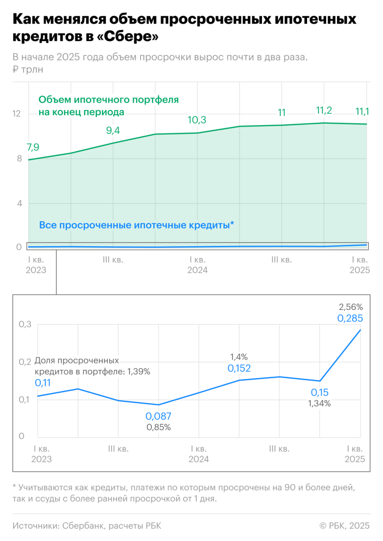 В первом квартале 2025 года заемщики «Сбера» стали хуже обслуживать взятые кредиты, следует из отчетности банка по МСФО, которую изучил РБК. Речь идет о клиентах с ипотечными и необеспеченными потребительскими ссудами.