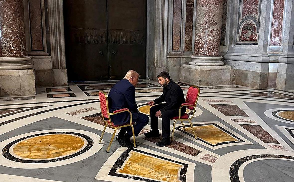 Встреча между Трампом и Зеленским прошла в базилике Святого Петра в день похорон папы римского Франциска. Это был первый личный разговор политиков после их перепалки в Белом доме двумя месяцами ранее.