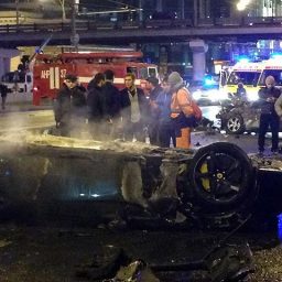 В ночь на 16 октября роскошный итальянский суперкар Ferrari на скорости примерно — 200 километров в час врезался на «встречке» в два других автомобиля — Volvo и Ford. Трое раненых — в больнице. Два автомобиля из трех сгорели. С ними и документы.