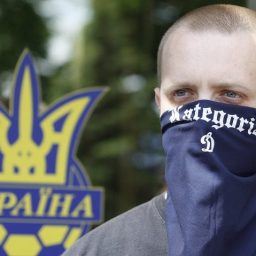 Во время матча Лиги чемпионов в Киеве несколько десятков украинцев прорвались за ограждение трибун и устроили потасовку